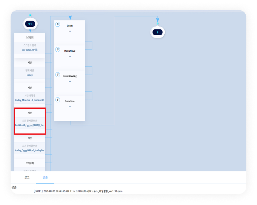 Flow Chart 상에서 Script 와 동일한 수준의 오류 핸들링 기능 지원