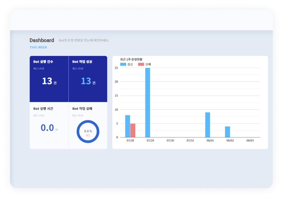 상세한 로봇 운영 결과 및 주요지표(KPI) 관리 기능 지원