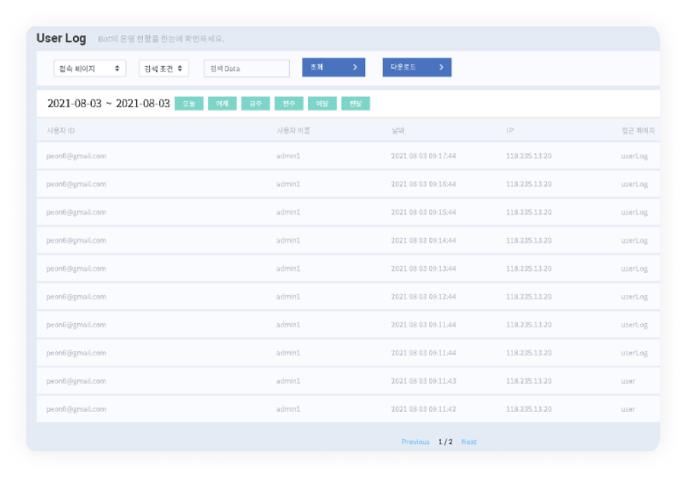 기본 Bot 및 과제수행 모니터링 기능 제공